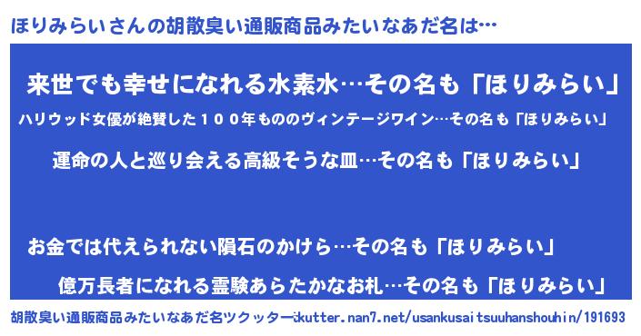 | 意味不明あだ名 | 『ほりみらいフォーエバー』 |