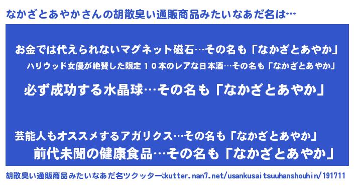| ヘコむあだ名 | 『なかもー』『なかざとあやか(笑)』 |