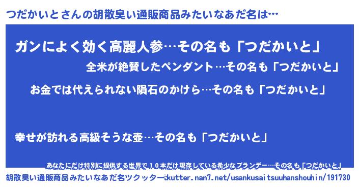 | ヒーロー風カッコイイあだ名 | 『慈愛の使者つだかいと』『仮面ツダダー』 |