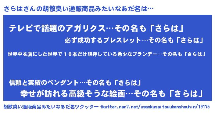 | 意味不明あだ名 | 『住所不定無職さらは(74歳)』『自称さらは』 |
