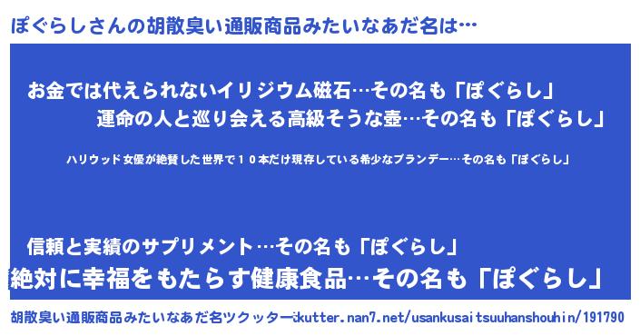 | 欧米人風あだ名 | 『ダレノガレぽぐらし』 |