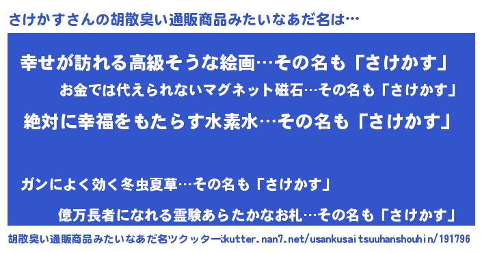 | 欧米人風あだ名 | 『ダルビッシュさけかす』 |