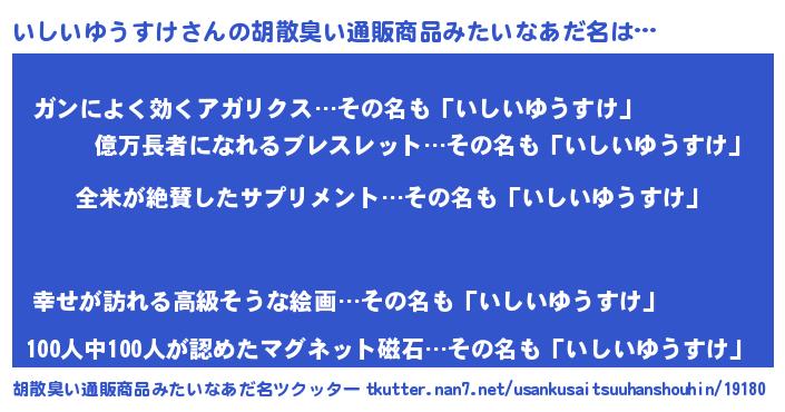 | 意味不明あだ名 | 『とにかく怪しいいしいゆうすけ』 |