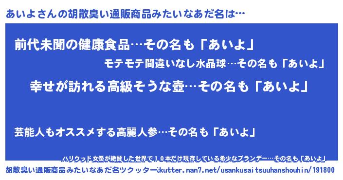 | 意味不明あだ名 | 『あいよフォーエバー』『永久保存あいよ』 |