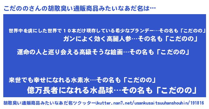 | 意味不明あだ名 | 『ヨモギ科こだのの属』『自称こだのの』 |