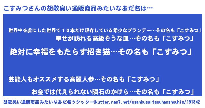 | 意味不明あだ名 | 『永久保存こすみつ』 |