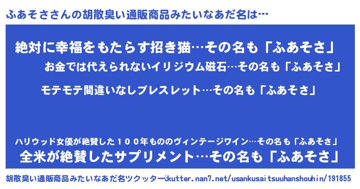 | 意味不明あだ名 | 『ペロリンふあそさ』『永久保存ふあそさ』 |