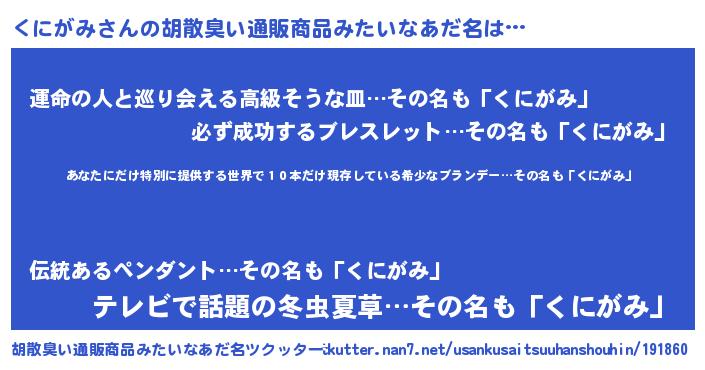 | 恥ずかしいあだ名 | 『くにっちょ』『クニガミデラックス』 |