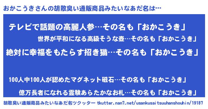 | ヘコむあだ名 | 『おかこうき(笑)』『おかにー』 |