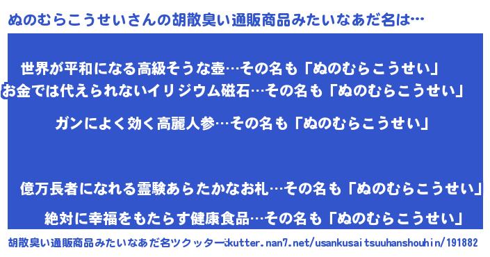 | 意味不明あだ名 | 『自称ぬのむらこうせい』 |
