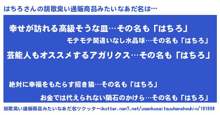| 意味不明あだ名 | 『ニラ科はちろ属』『自称はちろ』 |