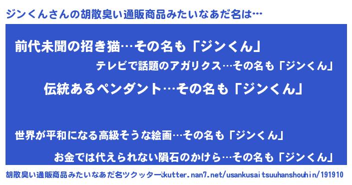 | 意味不明あだ名 | 『とにかく怪しいジンくん』 |