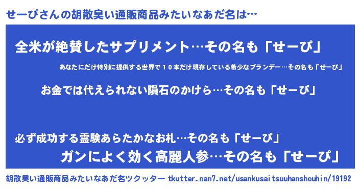 | ヒーロー風カッコイイあだ名 | 『愛の使者せーぴ』『幻影騎士セー』 |