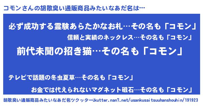 | ヘコむあだ名 | 『コモン(笑)』『コモっふぃ~』 |