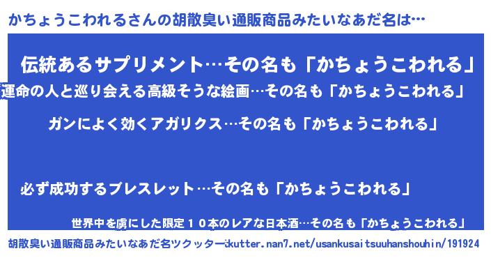 | 意味不明あだ名 | 『自称かちょうこわれる』 |