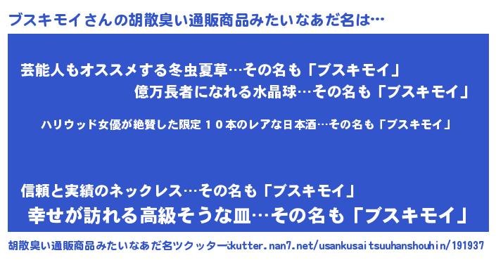 | 意味不明あだ名 | 『住所不定無職ブスキモイ(50歳)』 |