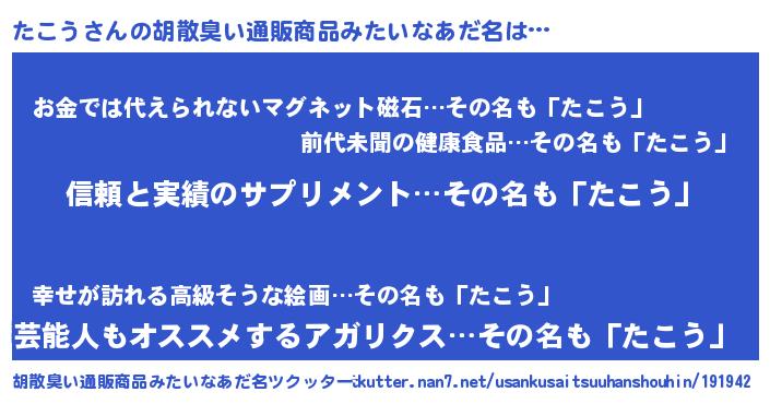 | ヒーロー風カッコイイあだ名 | 『黄金騎士タコ』『愛の使者たこう』 |
