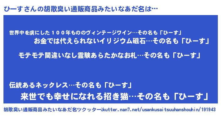 | 意味不明あだ名 | 『ペロリンひーす』『永久保存ひーす』 |