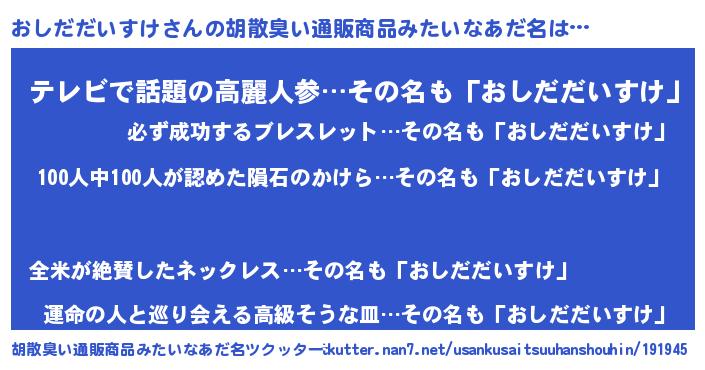 | 欧米人風あだ名 | 『トリンドルおしだだいすけ』 |