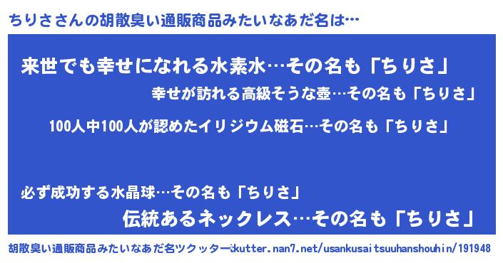 | ヘコむあだ名 | 『ちりさ(爆)』『ちりっちょ』『豆乳』 |