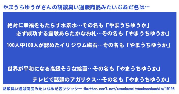 | ヘコむあだ名 | 『やまうちゆうか(笑)』『やまっふぃ~』 |