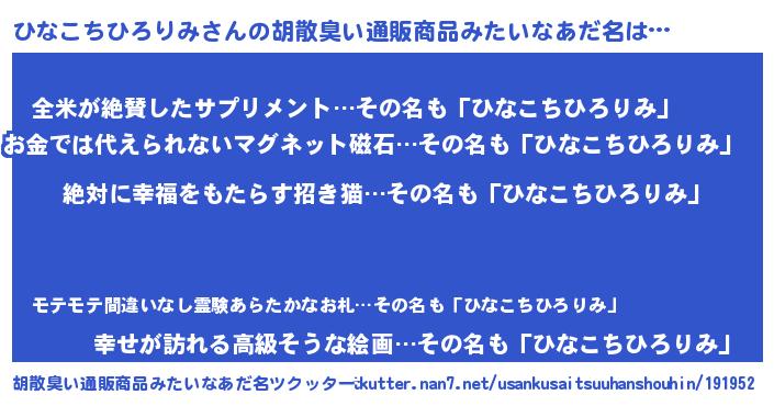 | 意味不明あだ名 | 『永久保存ひなこちひろりみ』 |
