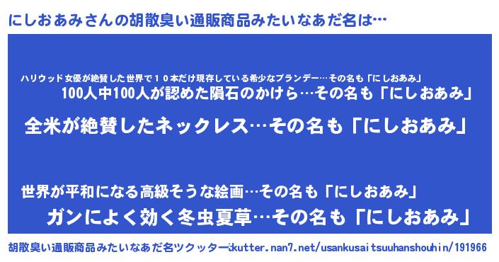 | 意味不明あだ名 | 『とにかく怪しいにしおあみ』 |