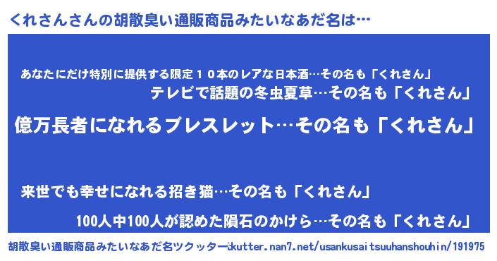 くれさんさんの胡散臭い通販商品みたいなあだ名をツクッター!