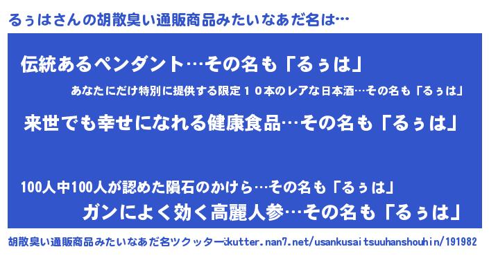 | 意味不明あだ名 | 『永久保存るぅは』『自称るぅは』 |