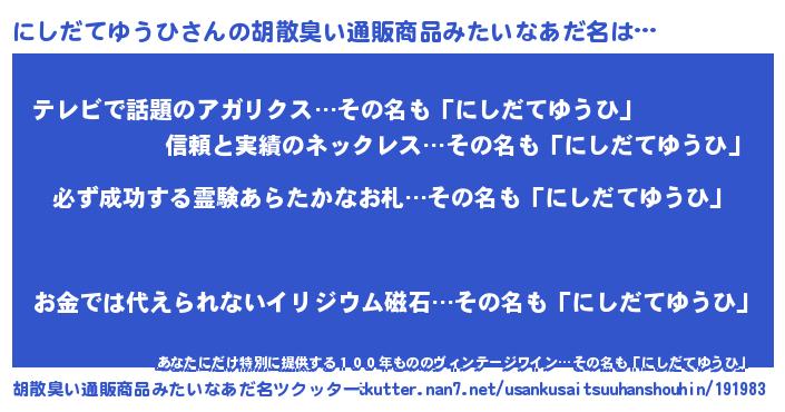 | ヒーロー風カッコイイあだ名 | 『スーパーニシダテユウヒ』 |