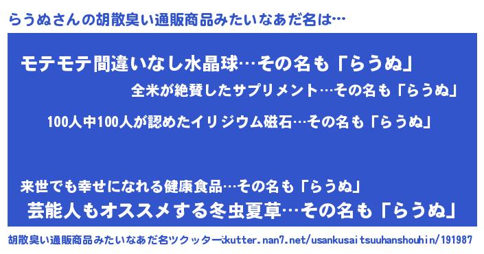 | 意味不明あだ名 | 『眠気覚ましガムらうぬ味』『自称らうぬ』 |