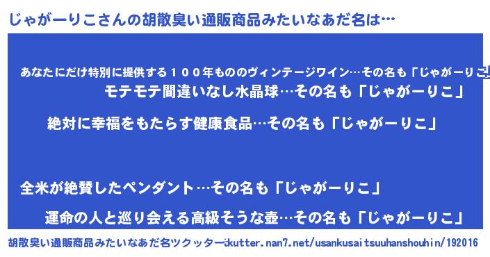 | 意味不明あだ名 | 『永久保存じゃがーりこ』 |