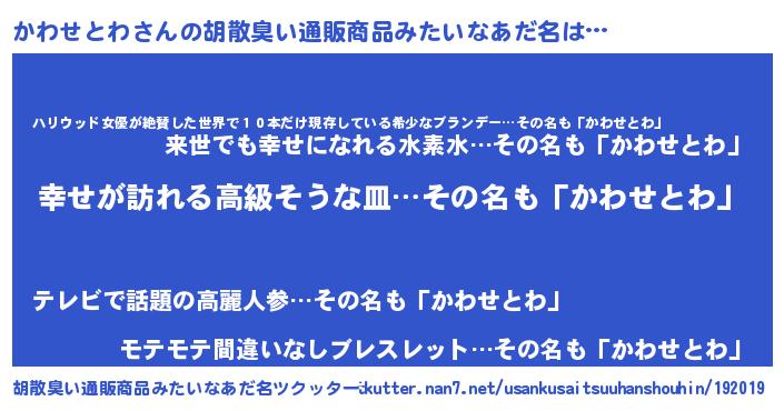 かわせとわさんの胡散臭い通販商品みたいなあだ名をツクッター!