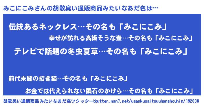 | 意味不明あだ名 | 『自称みこにこみ』 |