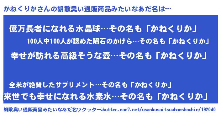 | 欧米人風あだ名 | 『かねくりかクリステル』 |