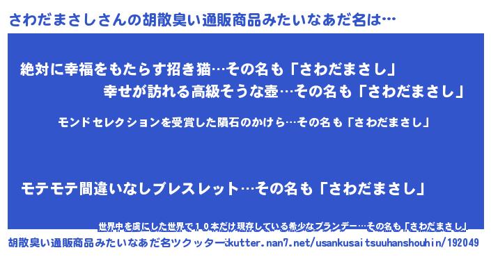 さわだまさしさんの胡散臭い通販商品みたいなあだ名をツクッター!