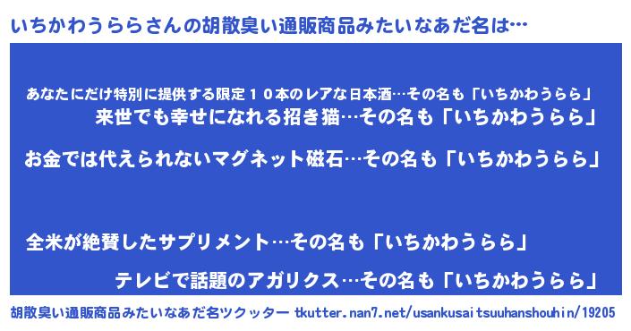 | ヘコむあだ名 | 『いちかわうらら(小並感)』『いち太郎』 |