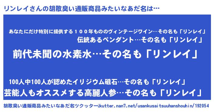 | 意味不明あだ名 | 『永久保存リンレイ』『自称リンレイ』 |