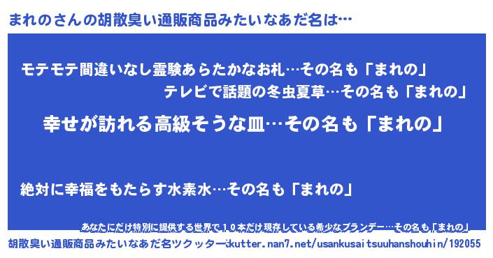 | 意味不明あだ名 | 『まれのフォーエバー』『ペロリンまれの』 |