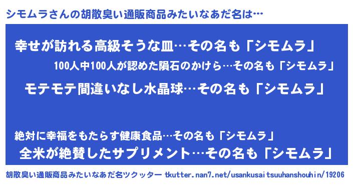 | 男性向けラノベタイトル風あだ名 | 『転生したらシモムラだった件』 |