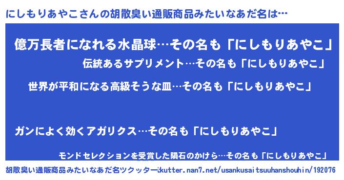 | 意味不明あだ名 | 『にしもりあやこフォーエバー』 |