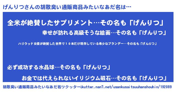 | 意味不明あだ名 | 『住所不定無職げんりつ(81歳)』 |