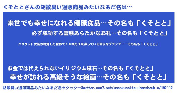 | ヘコむあだ名 | 『くそとと(震え声)』『なまこ酢』 |