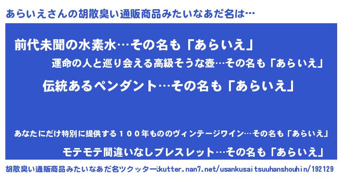 | 意味不明あだ名 | 『とにかく怪しいあらいえ』 |