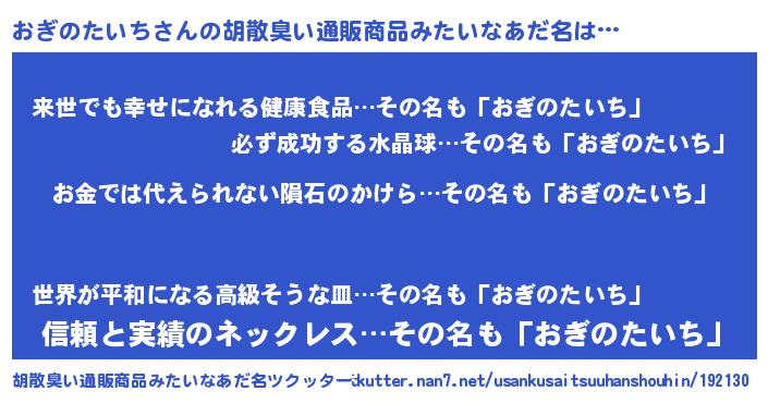 | ヘコむあだ名 | 『おぎのたいち(苦笑)』『おぎっ子』 |