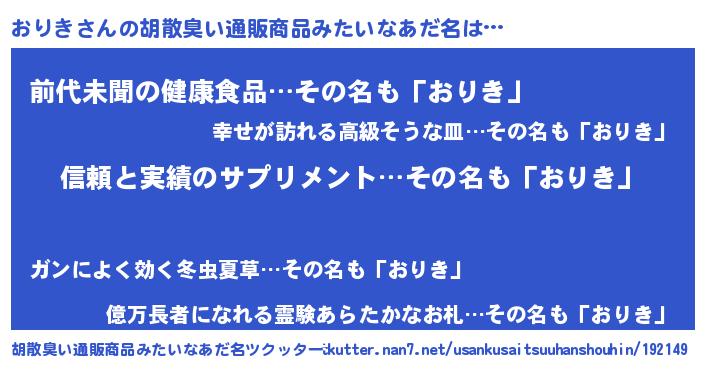 | 意味不明あだ名 | 『とにかく怪しいおりき』 |
