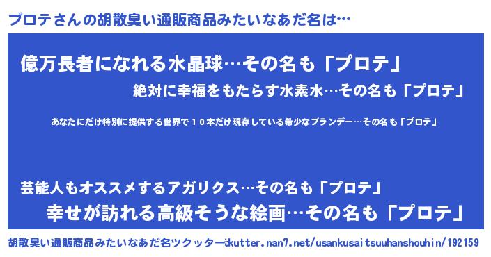 | 意味不明あだ名 | 『住所不定無職プロテ(74歳)』『自称プロテ』 |
