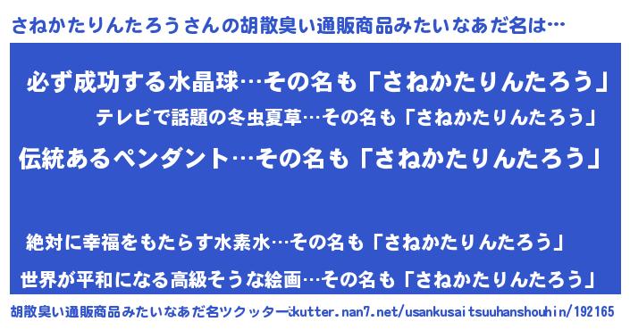 | 肩書あだ名 | 『さねかたりんたろうプロデューサー』 |