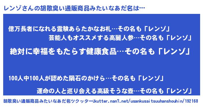 | 意味不明あだ名 | 『永久保存レンゾ』『ヨモギ科レンゾ属』 |