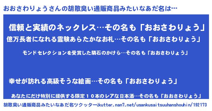 | 男性向けラノベタイトル風あだ名 | 『ノーゲーム・ノーオオサワリョウ』 |